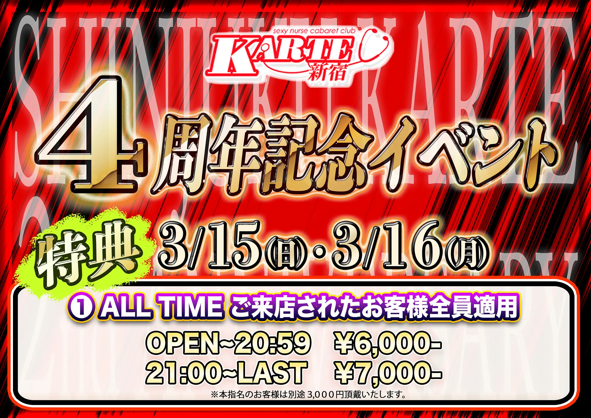 東京都新宿区歌舞伎町1-2-16 第一オスカービル5階 - 営業時間 18:00〜LAST (土日祝は17:00〜OPEN)